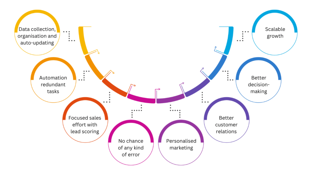 CRM collects your leads’ and customers’ data and stores it in an organised fashion without any human intervention.
