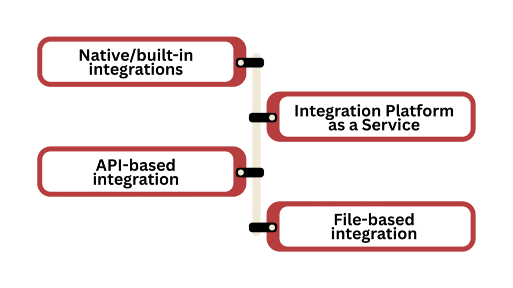 | Native Integration | iPaaS | API-Based | File-Based | |