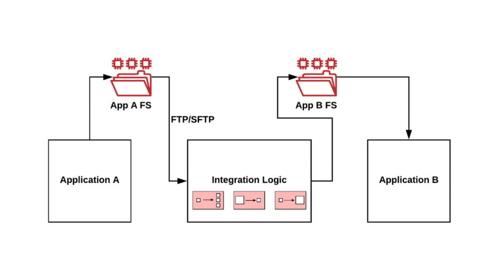 This one is an old-school approach that most of us won’t use today. However, if you have old systems and software that don’t support API, IPaaS or other modern integration approaches, you can go for file-based integration.